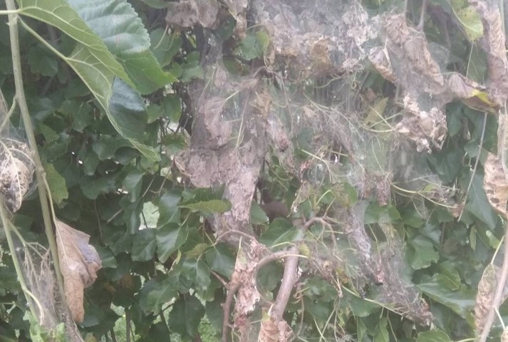 Гусені американського білого метелика повністю об’їдають листя на деревах, оповиваючи гілки павутинням