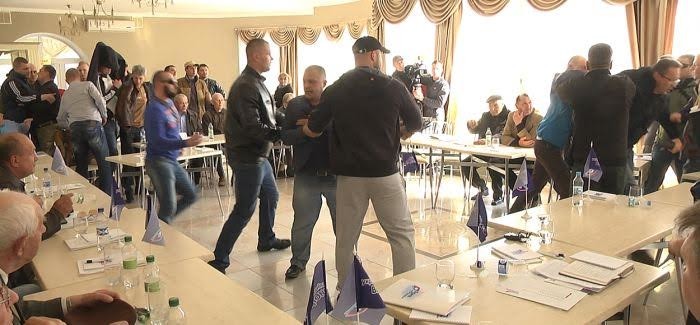 Під кінець зборів, під час обговорення проблем міста і регіону, в приміщення увірвався мер Конотопа Артем Семеніхін і влаштував дебош, повідомляє прес-служба «Українського вибору».