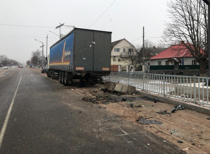 Після бокового зіткнення із ним некерований Volkswagen винесло до відбійника, де легковик влетів під автопоїзд DAF із напівпричепом.