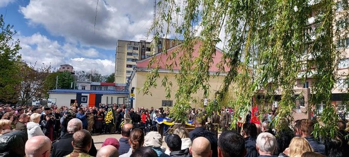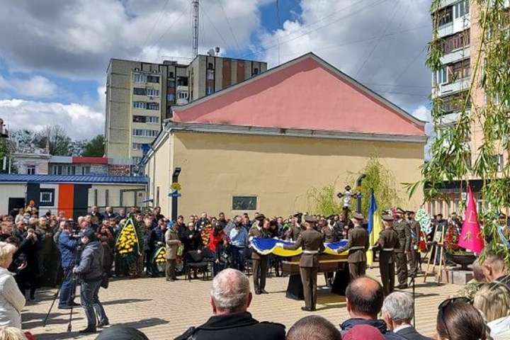 Як передає кореспондент УНІАН, більше тисячі місцевих жителів, знайомих та рідних провели в останню путь учасника ООС, який загинув 6 травня у районі селища Піски, що під Донецьком, на блокпосту від кулі снайпера.