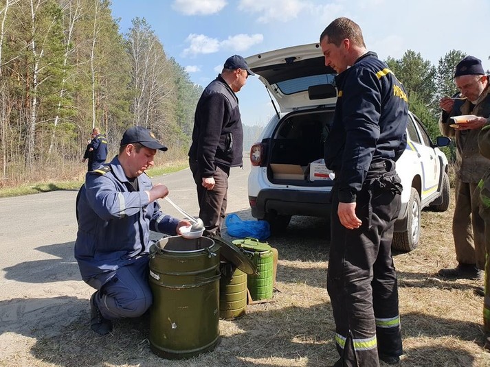 Як повідомлялось, у Чорнобильській зоні відчуження продовжується гасіння природних пожеж, на ранок 24 квітня досі тліють пеньки, залишки деревини та торф’янику в осередках, пройдених вогнем.
