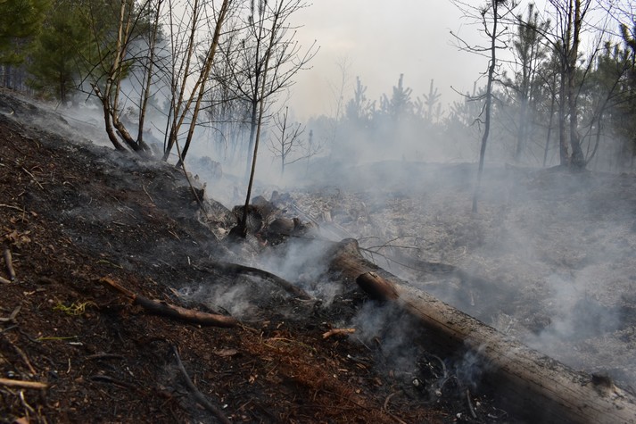 Станом на ранок 24 квітня триває гасіння окремих осередків трав’яного настилу, лісової підстилки, пеньків та деревини