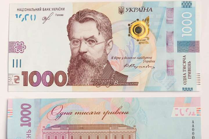 Національний банк з 25 жовтня 2019 року вводить у обіг банкноту нового найвищого номіналу – 1 000 гривень. На лицьовій стороні банкноти буде зображений один з засновників і перший президент НАН України Володимир Вернадський.
