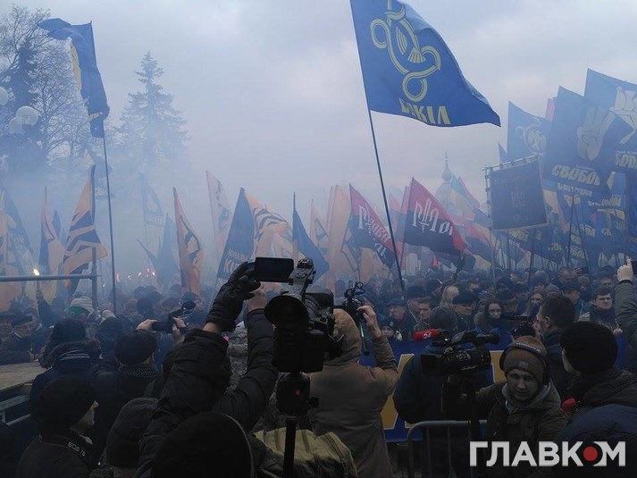 Нагадаємо, члени «Національного корпусу» («Азов»), «Правого сектора» та «Свободи» проводять кількатисячний мітинг під стінами парламенту. Загалом на площі зібралося понад 5 тисяч людей.