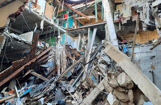 У Салтівському районі Харкова російська ракета влучила в гуртожиток для людей з вадами слуху, продовжуються пошуки потерпілих під завалами будівлі. На місці обстрілу виявлено уламки ракети типу 9М727 Іскандер.
