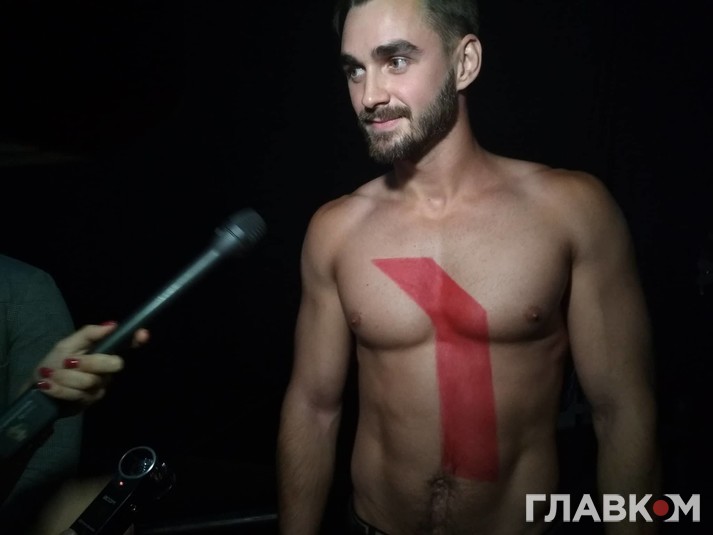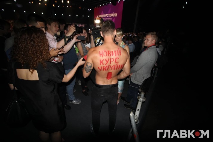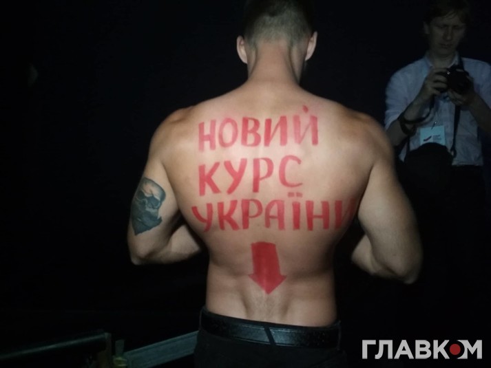 При цьому на тілі хлопця красувався напис «Новий курс України» із домальованою стрілочкою, яка вказує униз. Про це повідомляє кореспондент «Главкома».