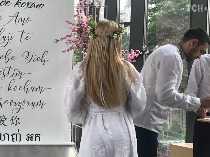 Народний депутат Євген Дейдей прийшов на церемонію укладання у вишиванці. Його обраниця Дарина Ледовських убралася в сукню за 10 тисяч гривень і прикрасила волосся квітами, йдеться в сюжеті ТСН.