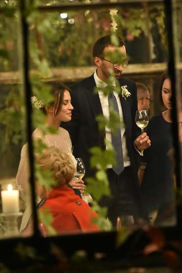 На ВДНГ Топольська і її дочка приїхали в схожих сукнях. У самої нареченої вінок замість фати. За святковим столом виявилося багато людей похилого віку і дітей - родичів і друзів тут явно більше, ніж колег.