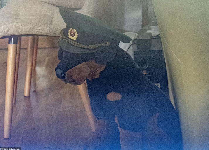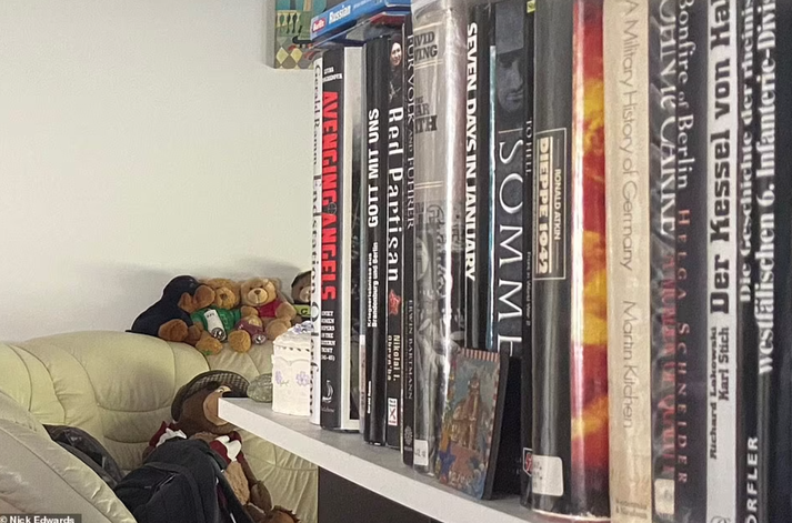 У помешканні знайшли кілька російських прапорів та нашивку розформованого за звірства під час Революції гідності в Україні підрозділу «Беркут». ЗМІ пише, що затриманий виявився фанатом військової та нацистської історії. Його книжкові полиці були заповнені книгами про танкову дивізію СС «Гітлерюгенд», «Військову історію Німеччини», «За народ і фюрера: спогади ветерана 1-ї танкової дивізії СС «Лейбштандарт», «Фронтова Україна».