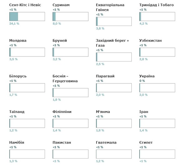 За темпами щеплень нас випереджають здебільшого бідні країни Африки, такі як Нігерія, Сомалі, Конго і Малі