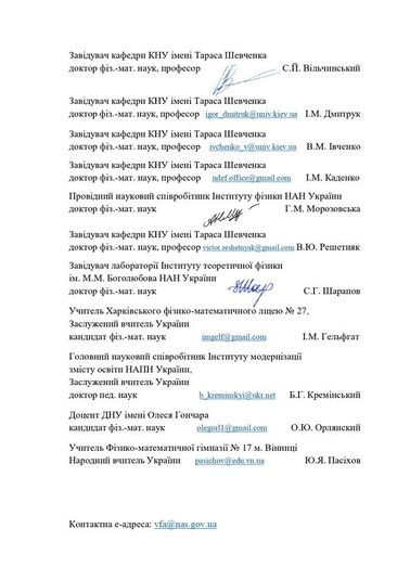 «Воно має повернутися на рейки отримання повномасштабних за змістом і доступних за формами знань, коли природничо-наукова та інженерно-технічна освіта знову набуде престижу, оскільки саме вона виступає гарантом технологічного розвитку нашої держави, чого ми так палко бажаємо», - наголосили підписанти листа.