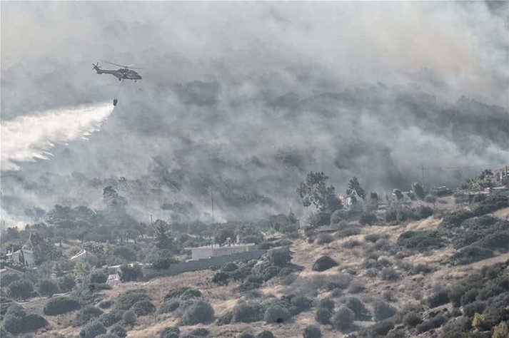 Пожежна служба повідомила, що близько 180 пожежників намагаються стримати лісові пожежі, що вирують в районі Феріз поблизу Калівії, за допомогою восьми гелікоптерів та п'яти літаків, а також місцевих волонтерів.