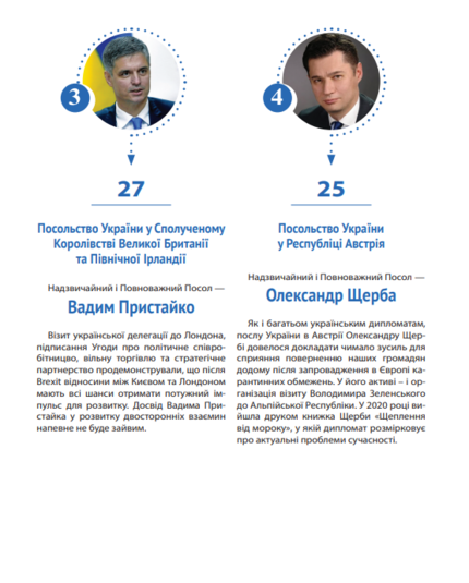 На третьому місці – Посольство України в Сполученому Королівстві Великої Британії та Північної Ірландії на чолі із Надзвичайним і Повноважним Послом Вадимом Пристайком.
