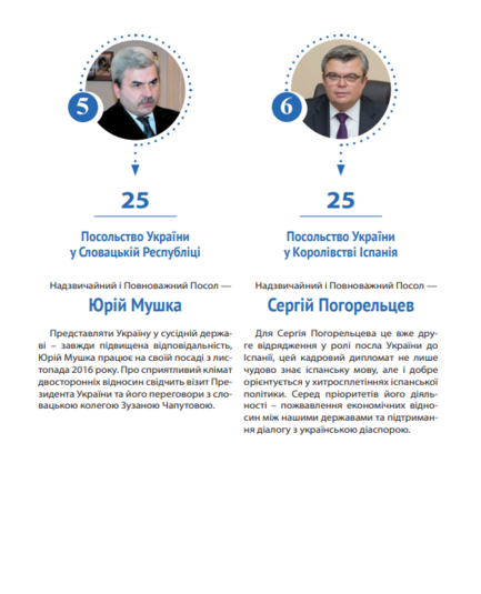 Другу сходинку посідає Посольство України у Швейцарській Конфедерації та Князівстві Ліхтенштейн на чолі із Надзвичайним і Повноважним Послом Артемом Рибченком.
