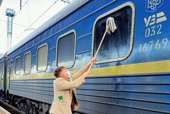 Пасажир поїзда Ізмаїл-Київ, данець Йоханес Вамберг Андерсен був змушений самостійно купити швабру й мийний засіб, щоби вичистити забруднене вікно свого вагона. Житель Копенгагена виставив фото із процесом миття на своїй сторінці в Facebook.
