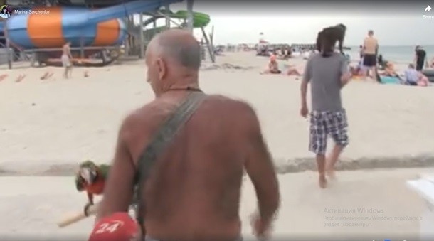 «На пляжі ми побачили, що йдуть двоє людей з тваринами на плечах. У однієї була мавпа, у другої - великий папуга Ара. Коли вони побачили делегацію, відразу прискорили крок. Я покликала оператора, щоб побігти за ними і запитати про наявність документів. Вони обидва були без масок. Спочатку він почав хамити зі словами «поїхали зі мною – розповім», «вас скоро виженуть з каналу, і будете зі мною тут ходити», «нічого вам не скажу». Потім повернувся і вдарив рукою по мікрофону, з нього злетіла брендована фішка. Я йому сказала, що він перешкоджає журналістській діяльності, а він почав передражнювати: «Ага, ага, поговори...», - розповіла Савченко.