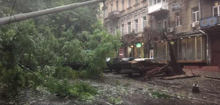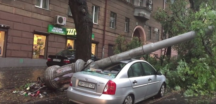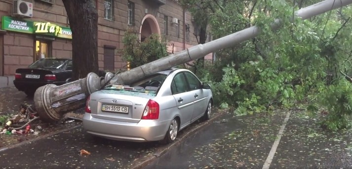 Негода в Одесі: стовп розчавив автівку