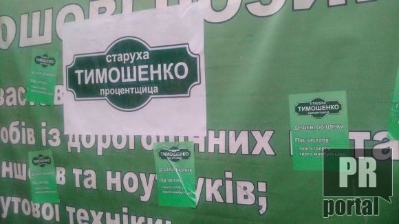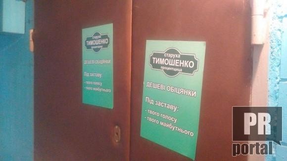 Невідомі активісти заклеїли «ломбарди Тимошенко» провокативними листівками