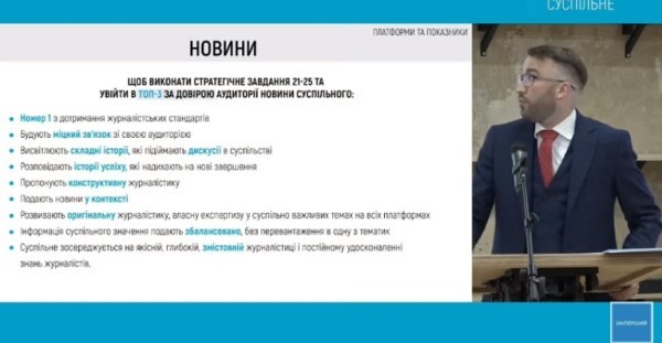 Микола Чернотицький представив програму розвитку НСТУ за допомогою слайдів: