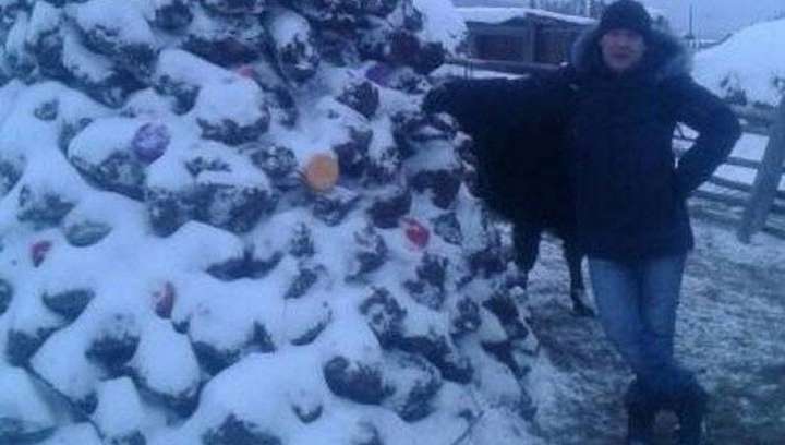 Автором скульптури став житель Якутії Михайло Боппосов. Росіянин навіть прикрасив саморобну ялинку і наверх поставив зірку.