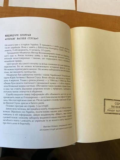 Новий тираж книжки про Стуса випустили з рішенням суду про її заборону