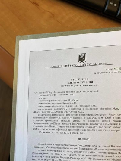 Нагадаємо, Дарницький районний суд 19 жовтня ухвалив рішення, який частково задовольнив позов народного депутата від «Опозиційної платформи – За життя» Віктора Медведчука проти журналіста й історика Вахтанга Кіпіані та видавництва Vivat про заборону видання і поширення книги «Справа Василя Стуса».