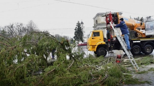 Після скандалу мер Кишинева пообіцяла встановити нову ялинку за власний рахунок – нову ялинку висотою 19 метрів зрубали в одному з житлових масивів міста на території колишнього дитячого садка.