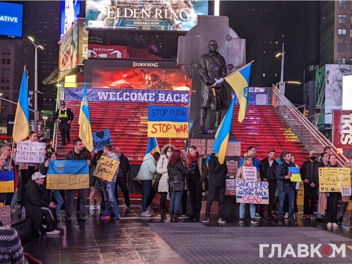 У Нью-Йорку не припиняються акції підтримки України, яка воює проти Росії. На вулицях американського міста буквально на кожному куті українська національна символіка, а міські сітілайти засяяли синьо-жовтими кольорами, передає «Главком».