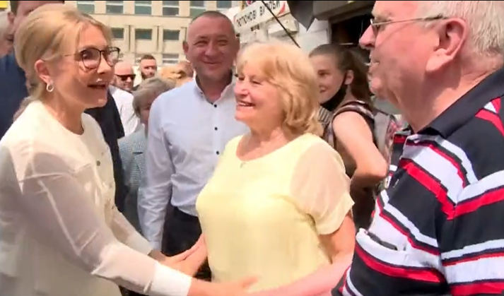 Обійми та діалоги. Тимошенко виступила на базарі в Тернополі (відео)