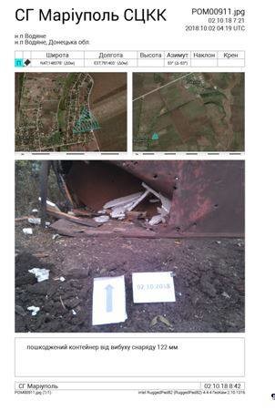 «Збройні формування Російської Федерації продовжують нехтувати безпекою, життям та здоров'ям цивільного населення. 1 жовтня бойовики здійснили обстріл населеного пункту Водяне, застосувавши заборонену Мінськими угодами артилерію калібрів 152 мм та 122 мм. Групою офіцерів української сторони СЦКК, які прибули на місце обстрілу, з’ясовано, що вогонь вівся з напрямків населених пунктів Пікузи та Азов», - йдеться у повідомленні.