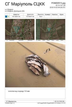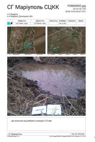 У звіті зазначається, що на місці обстрілу виявлено одинадцять вирв від влучання снарядів калібру 122 мм та одну вирву - від снаряду калібру 152 мм. Внаслідок влучання 122 мм снарядів зруйнована будівля та пошкоджений контейнер.