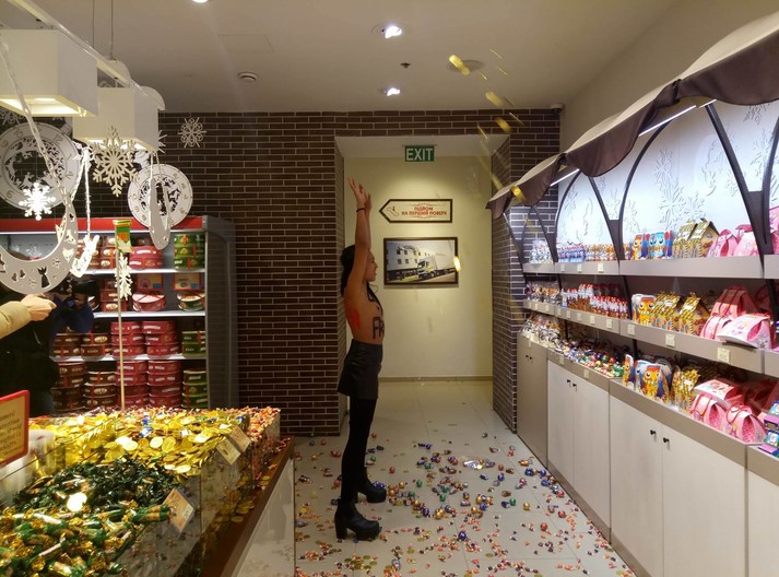 Оголена активістка Femen влаштувала в магазині Roshen «чорну п’ятницю»