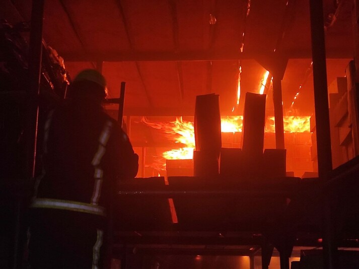 «Ще один виклик поступив на склади, куди потрапив снаряд, внаслідок чого виникла пожежа на площі 3000 кв. м. Є загроза вибуху снаряду, через що здійснюється гасіння пожежі з безпечної відстані. Ліквідація триває», – сказано оперативному зведенні ДСНС.
