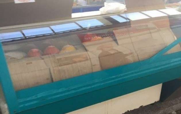 На центральному ринку в Керчі (окупований Крим) поліцейські в супроводі військових вилучили у продавців продуктові товари українського виробництва.
