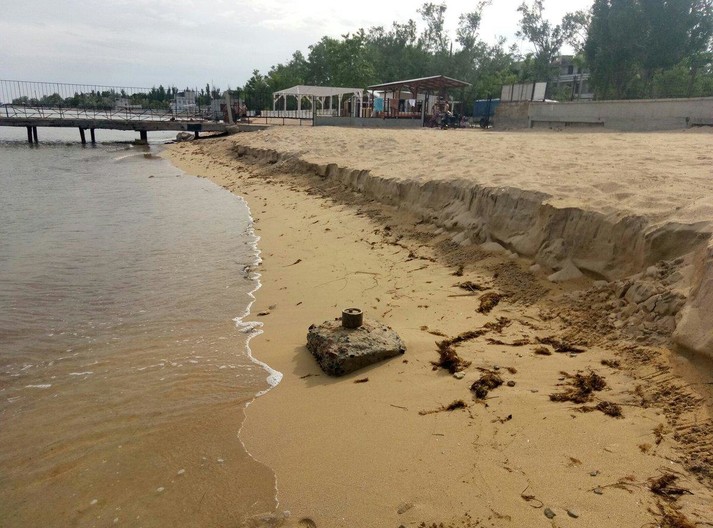 Також наголошується, що палі, які, як видно на фото, стирчать з піску, раніше ніколи не були помітні, а від навісу до моря було не менше 3-5 метрів.