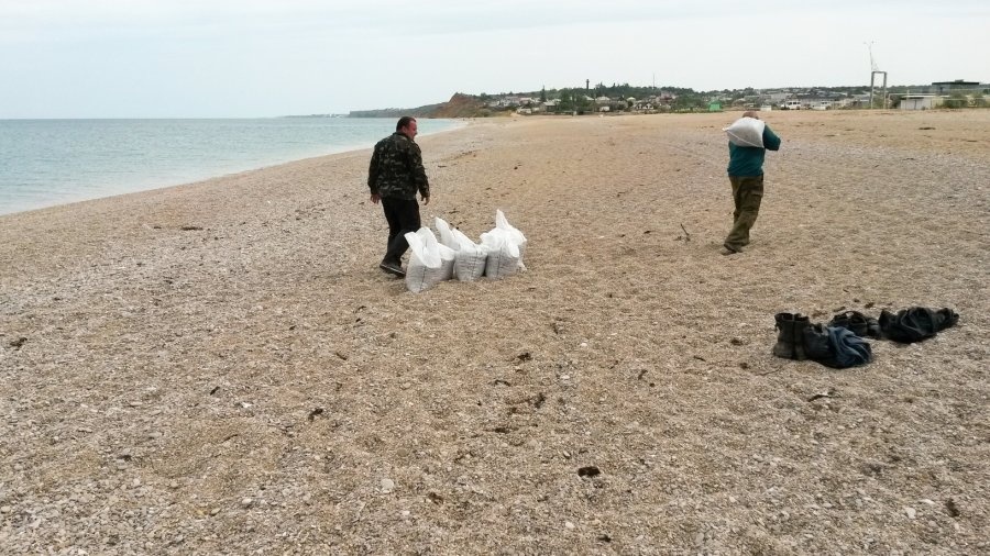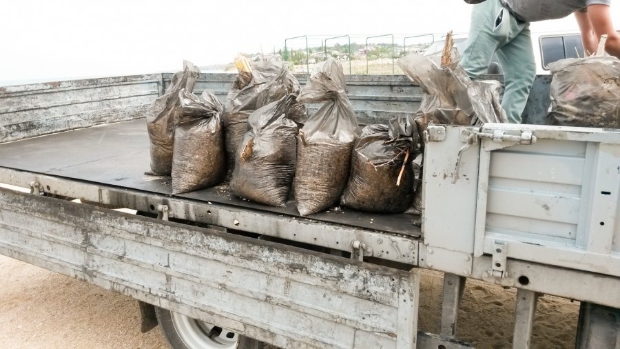 Близько трьох кубометрів морського піску, забрудненого мазутом, вивезли з пляжів окупованого Севастополя представники російських комунальних служб разом з «рятувальниками».