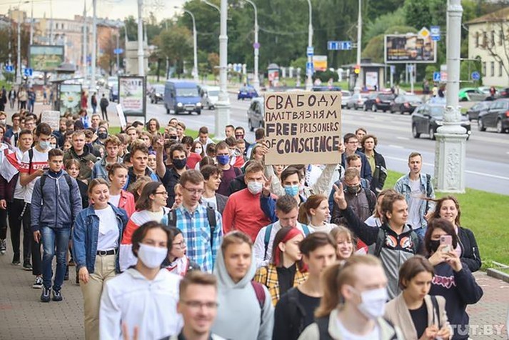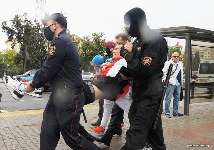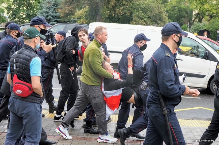 У столиці Білорусі Мінську силовики почали розгін студентів, які вийшли на акції протесту. Затриманих студентів садять в мікроавтобуси.