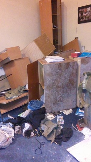 Добровольчий рух «Організація українських націоналістів» оприлюднив фотографії розгромленого офісу у Києві після ранішнього штурму офісу, здійсненого правоохоронцями. Фото було розміщено на сторінці руху в Facebook.