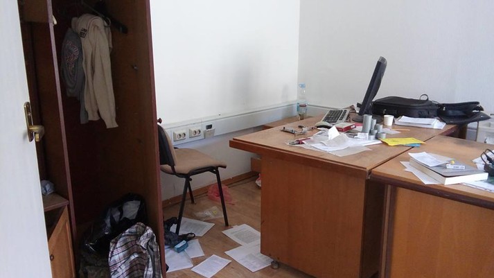 «Нарешті потрапили у штаб... розгромлений штаб. Усе всередині перевернуто, меблі та скло побиті. На підлозі плями від крові. Якась така демократія», – йдеться у повідомленні руху.