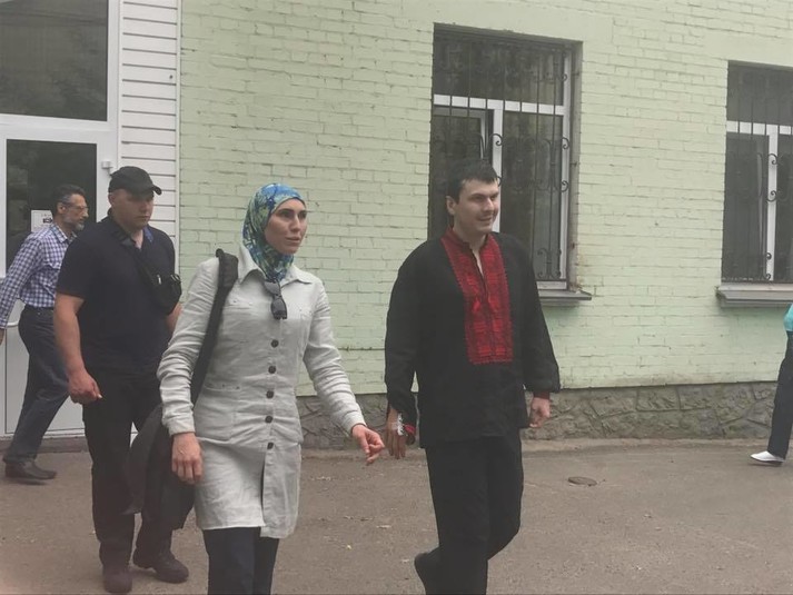 «Адама Осмаєва виписали з лікарні. Він у вишиванці і в гарному настрої. Біля нього його дружина Аміна Окуєва. Саме вона нейтралізувала кілера та надала першу допомогу чоловікові», – написала журналістка.