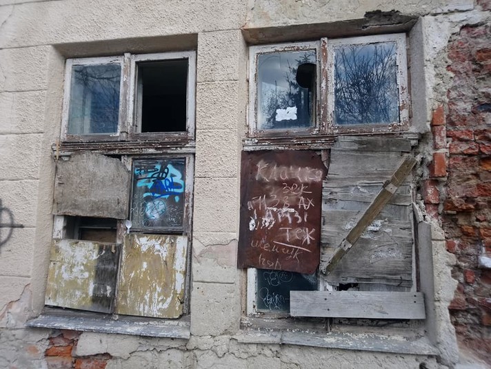 Стіни пам'ятки архітектури облуплені та поступово руйнуються, а вікна нагадують казки про занедбані хатинки посеред лісу