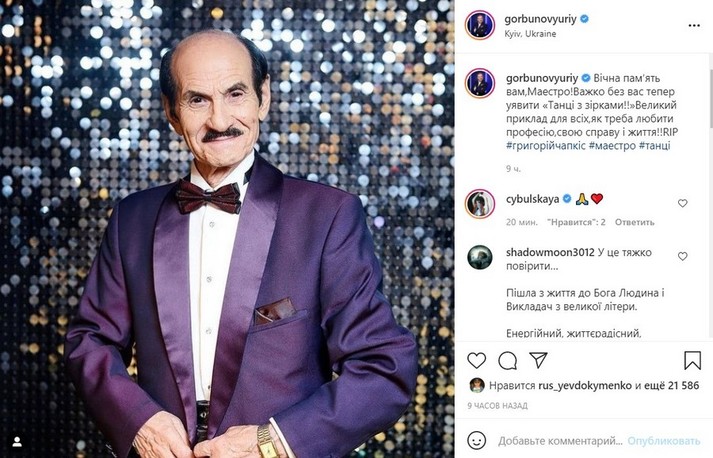 «Вічна пам'ять, Маестро. Важко тепер уявити без вас «Танці з зірками», – написав під фотографією Чапкіса ведучий танцювального проекту Юрій Горбунов.