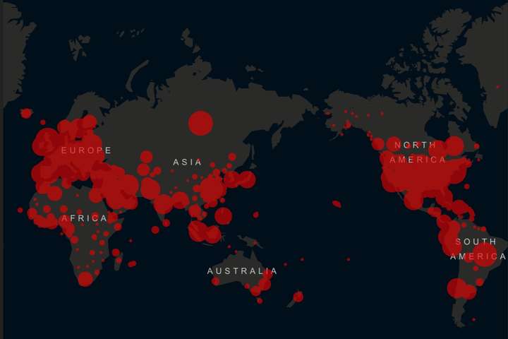 Про це свідчать дані інституту імені Джона Хопкінса, який веде підрахунок випадків зараження коронавірусом.