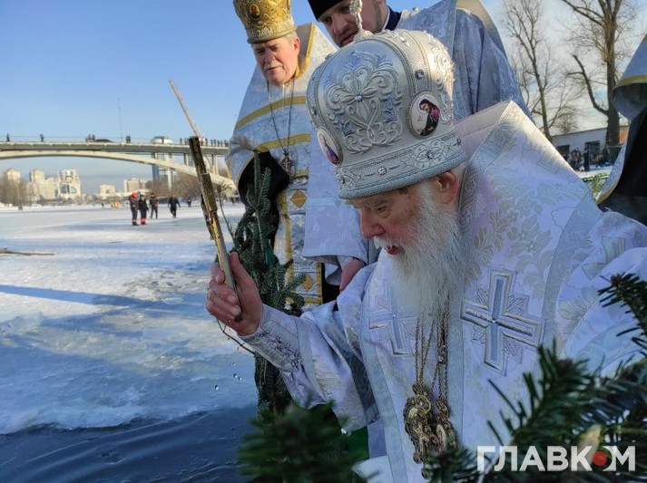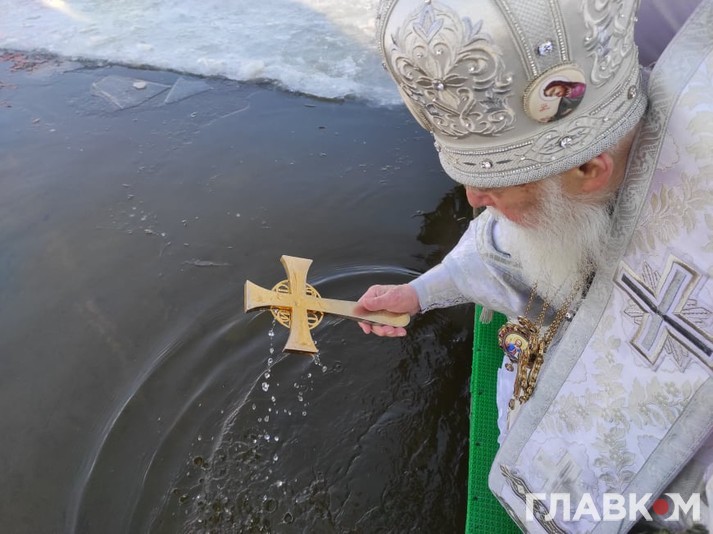 Сьогодні освятив води Дніпра також предстоятель Української Православної Церкви Блаженніший Митрополит Онуфрій. На Оболоні в ополонку пірнуло кілька десятків сміливців .