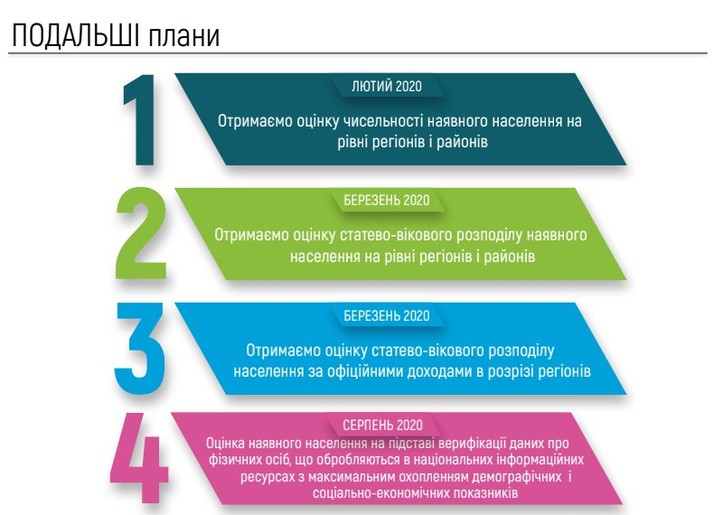 «Сподіваюсь, ми… з вами поділимось цього або максимум наступного тижня. Ми встановили фактично кількість наявного населення в Україні. Ми використовували кілька методик, вони дали приблизно однаковий результат, і ми бачимо, що наступного тижня, я сподіваюсь, ми зможем поділитись першими результатами», - сказав Дубілет.