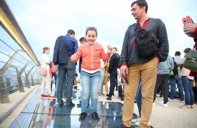 «Майже всі матеріали, що використовували для будівництва, виготовлені в Україні. Скло, яким облаштували 70 квадратних метрів підлоги оглядових майданчиків – теж українське. Воно – міцне, я особисто його випробував. У Німеччині ж закупили деформаційні шви і ванти мосту», - пояснив Віталій Кличко.