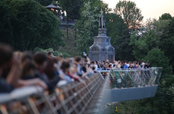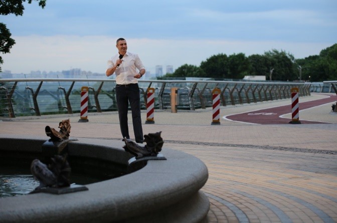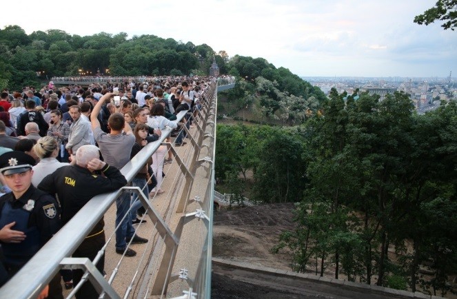 «Сьогодні ми відкриваємо в столиці справді унікальний об’єкт! Пішохідно-велосипедний міст, що з’єднує парк «Володимирська гірка» з Аркою дружби народів. Цей міст планували звести ще понад 100 років тому, а ми це зробили!», – сказав Кличко.