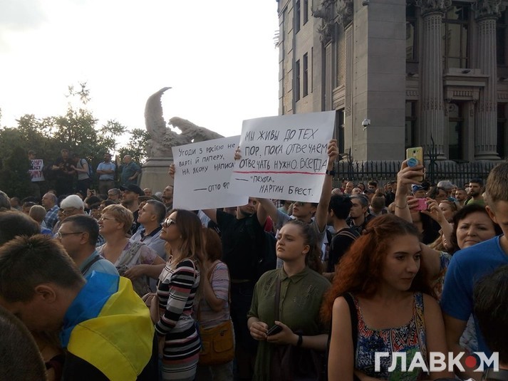 Як зазначають організатори мирного протесту, вони вимагають «припинити капітулянтські заяви» від команди шостого президента Володимира Зеленського та відправити у відставку керівника АП Андрія Богдана, а разом з ним і прессекретаря президента Юлію Мендель, «яка озвучує проросійські меседжі».