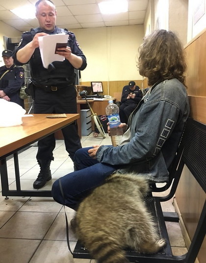 Під час протестів у Москві в поліцію потрапив єнот (Фото)