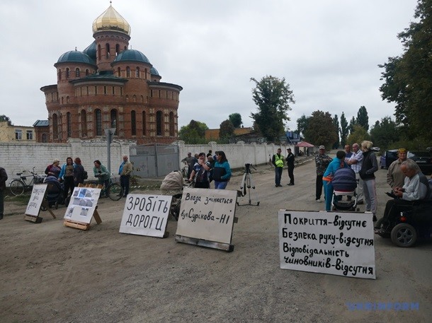 «Дорожні служби ігнорують цю дорогу вже більше двох років. За цей час жодної латки асфальту не поклали. Взимку транспорт тут постійно застряє, і ніхто на це не реагує», - сказав учасник акції житель Хуторів Олександр Янчук.